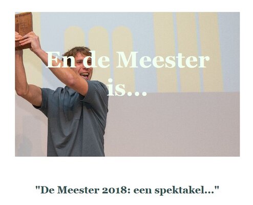 Wauw, wat een bijzonder spectaculaire avond, de uitreiking van de Meester 2018. Bedankt voor het enthousiasme en de enerverende ideeën. En Bram, nogmaals proost op je meesterwerk!