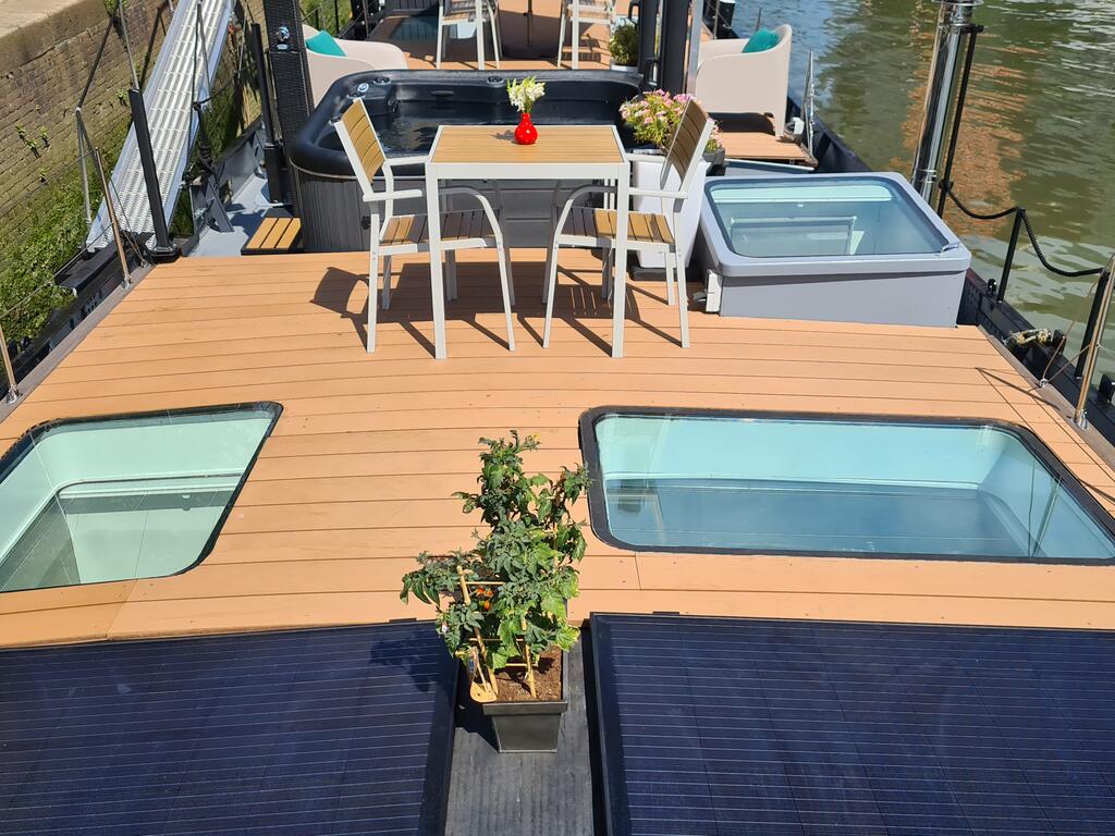 ”……De Red Apple aan de Wijnhaven is een prachtig voorbeeld daarvan, omdat in de Wijnhaven inmiddels veel levendigheid ontstaan is. Er is een kleine jachthaven, er liggen historische schepen, twee Wikkelboaten en een Coaster”…… Bovendien varen er zeer bijzondere vaartuigen rond zoals een elektrisch voortbewogen drijvende badkuip met mensen in badkleding. Ook zie je op de Wikkelboat en de Coaster jacuzzi’s.